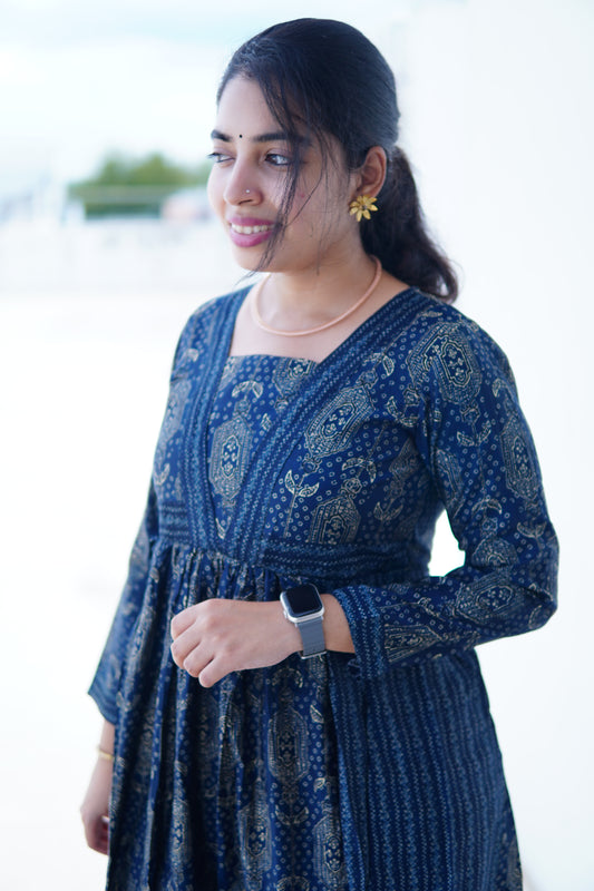 Navy nights:Blue full length dress