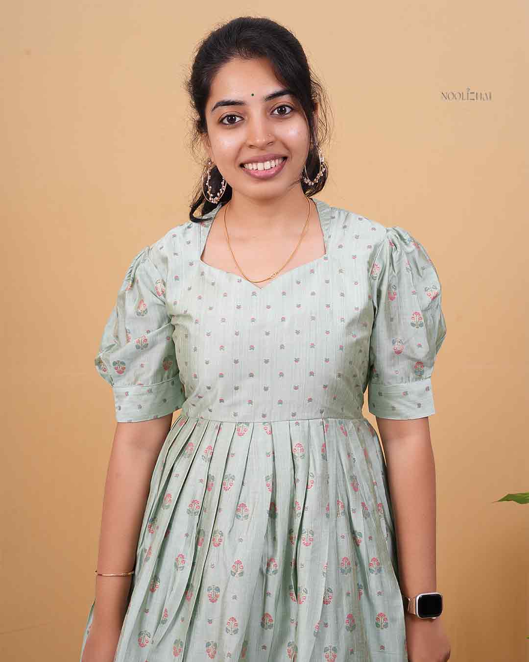 Add a touch of elegance to your wardrobe with this lovely Mint green silk long salwar.The flowy fabric and neck design make it perfect for special occasion wear.